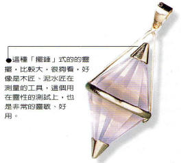 2. 要「格式化」,順著北半球的自然規律來與靈擺溝通,凡是正面的、積極的、好的、對的,都一律順時鐘方向來旋轉;凡是負面的、消極的、壞的、錯的,都一律逆時鐘來旋轉。需先練習,與靈擺習慣了,取得相當的默契後,就可以正式測試了。